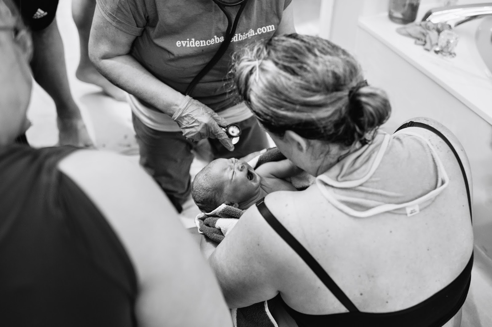 Once things started to calm down, and her cord finished pulsing, Vince cut it, and I was able to have her try to nurse a little bit. We worked on that for a few minutes in the bathroom while I passed the placenta. I then handed Sloan off to Vince and they got me into a healing sitz bath to rinse off.
